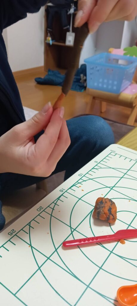 粘土のルールを二つ設けさせてもらいました。1、新しい粘土は混ぜて使わない2、粘土の道具は仲良く使う!