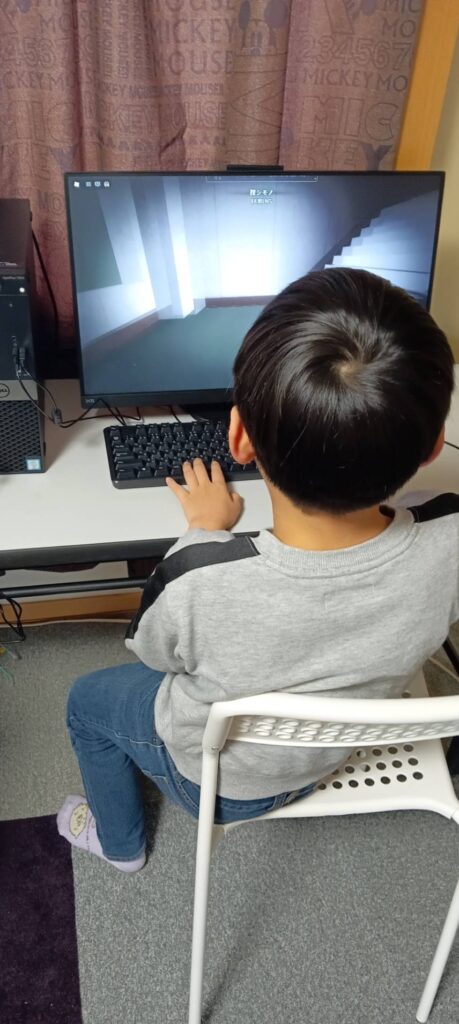今日の活動は「リトミック」を予定していましたが、久しぶりに会ったお友達とパソコン活動を行っていましたので、そのままパソコン活動をメインに遊び過ごしています😊