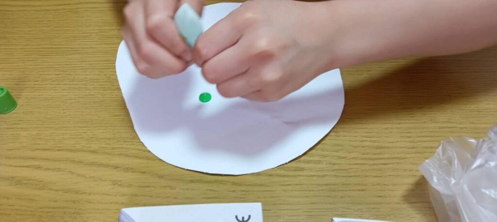 絵の具の量を調節していますが、なかなか上手に出すことが難しい様子が見られています💦
