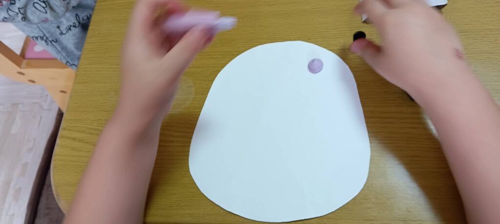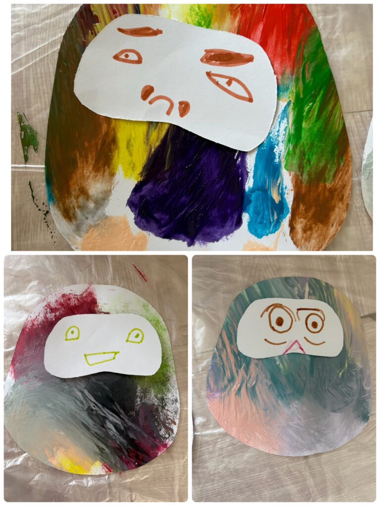 白い画用紙に好きな絵の具を絞り、それをポリ袋に入れ絵の具を上から指でなぞっていく活動を行いました😊