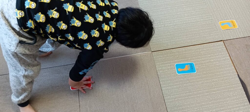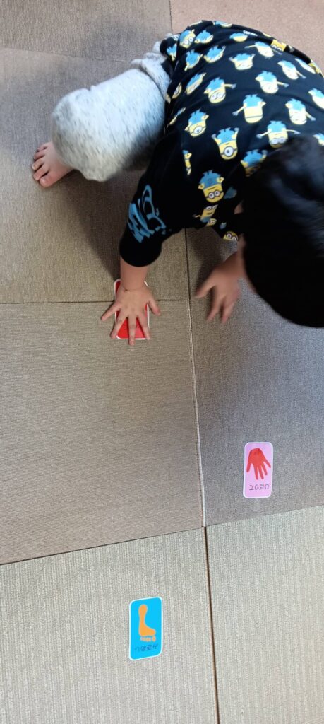 手の後に「足」も加わると更に難しくなりますが、テンポについていこうと頑張っている様子が見られています👀