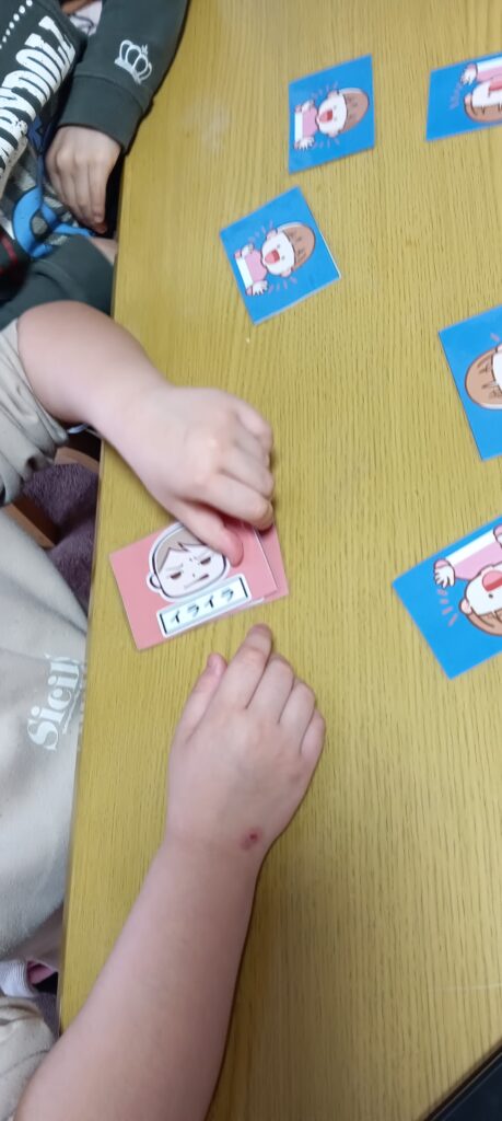 SST(ソーシャルスキルトレーニング)も兼ねて表情を見て同じものを合わせていく遊びでは、たくさん覚えて取れるお子様もいれば、集中してみていることが難しいお子様もいるので、集中力を養うための遊びでもあります♪