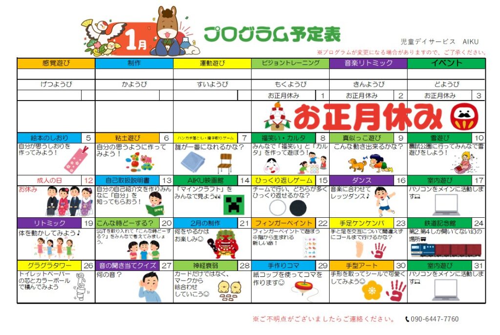 1月のプログラム完成しました!!